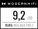 „In unserer Klangwertung bescherten uns die Teufel REAL BLUE TWS 3 einen glaubwürdigen und facettenreichen Klang. Die neuen REAL BLUE TWS kommen problemlos mit allen Genres zurecht, ganz gleich, ob wir Rock oder House/Dance hörten. Ebenfalls bieten die Teufel TWS einen hervorragenden und präzisen Bassbereich, ohne dabei komplexe Strukturen zu vernachlässigen.“