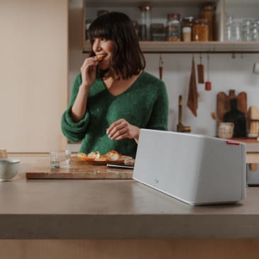 Tragbares, Akku-betriebenes All-in-one-Streamingsystem mit AirPlay 2, Chromecast built-in und Bluetooth in skandinavisch inspiriertem Design
